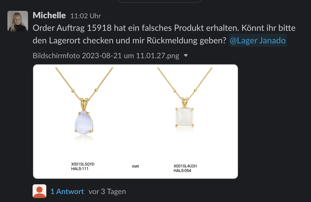 - Hat Kunde bereits Bild von falsch erhaltenem Produkt geschickt? Ja: Antwortvorlage Bild bereits geschickt